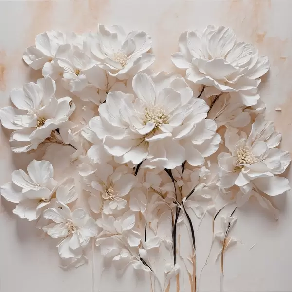 Poster Flori albe pe fundal alb-portocaliu Nr f41042