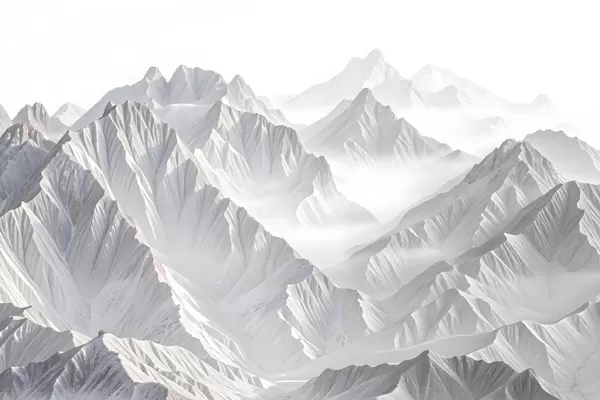 Poster Vârfuri de munte minimaliste cu zăpadă într-un peisaj încețoșat, cețos Nr f41083