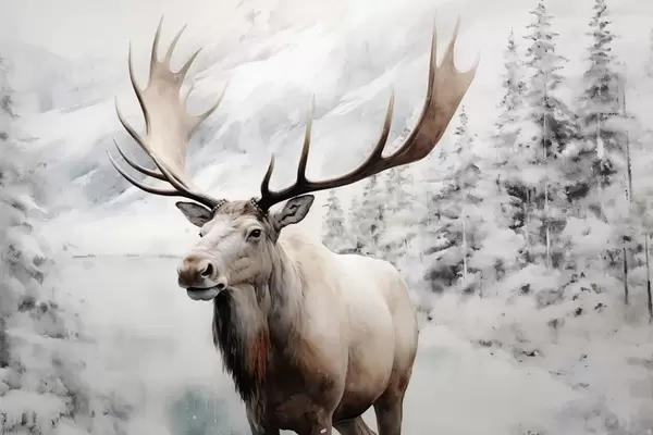Poster Elan pe fundalul unei păduri de iarnă în acuarelă de zăpadă Nr f41284