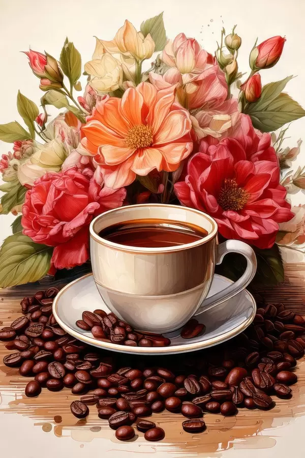 Poster o ceașcă de cafea și un buchet de flori Nr f41411