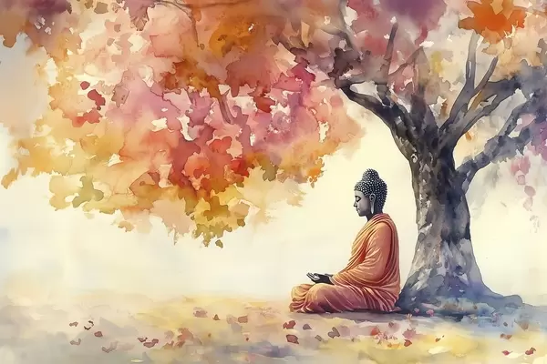 Poster Buddha meditând sub copac, stil acuarelă, toamnă, ezoteric Nr f41887