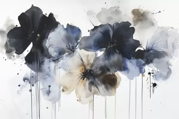 Poster Flori acuarelă, stil fluid, culori albastre Nr f42207