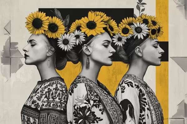Poster Femei frumoase în etnice se închide cu chei de floarea soarelui Nr f42378