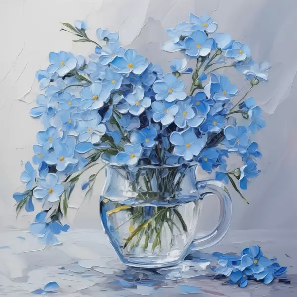 Poster Flori albastre într-o vază transparentă imitație de pictură Nr f42467