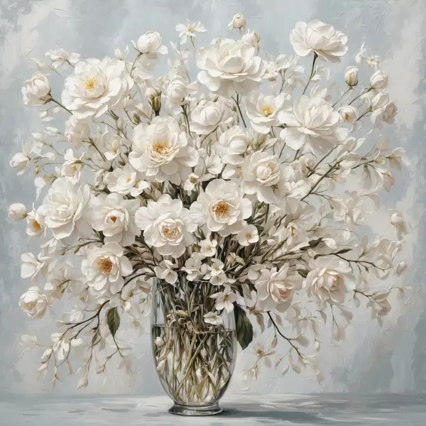 Poster Flori albe în vază transparentă în stilul picturii acrilice Nr f42545
