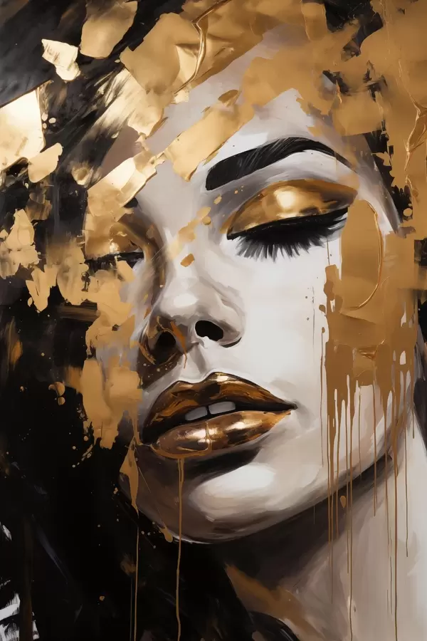 Poster Un portret abstract al unei femei cu tușe bogate în tonuri calde, creând o imagine vibrantă și dramatică f42619