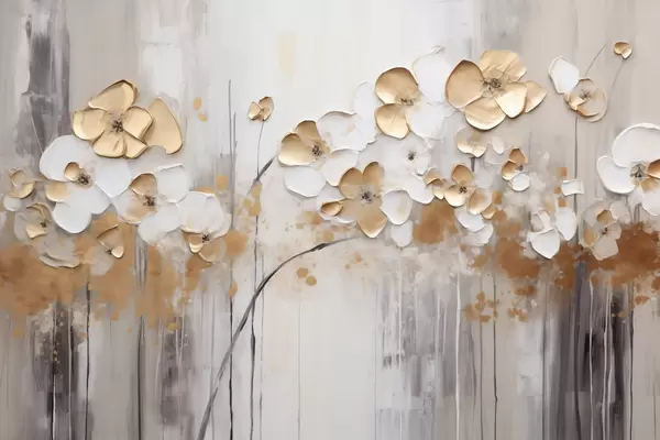 Poster Flori cu petale texturate pe un fundal moale, mut, cu stropi abstracți de culoare și linii verticale Nr f42713
