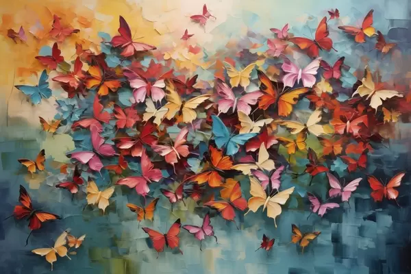 Poster O gamă vibrantă de fluturi în diferite culori imitație de pictură în ulei f42728