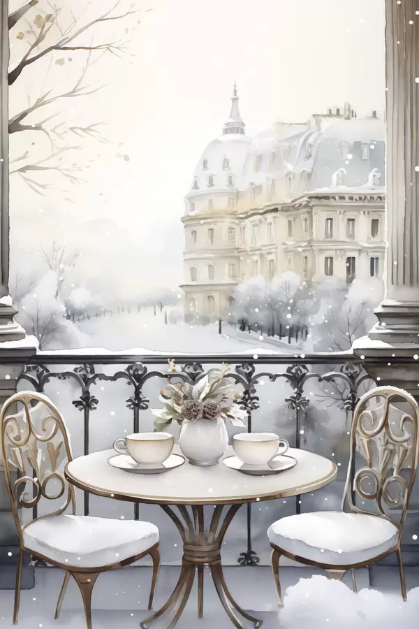 Poster Cafea frumoasă, cești de ceai, stil boem, acuarelă, estetica iernii Nr f42796