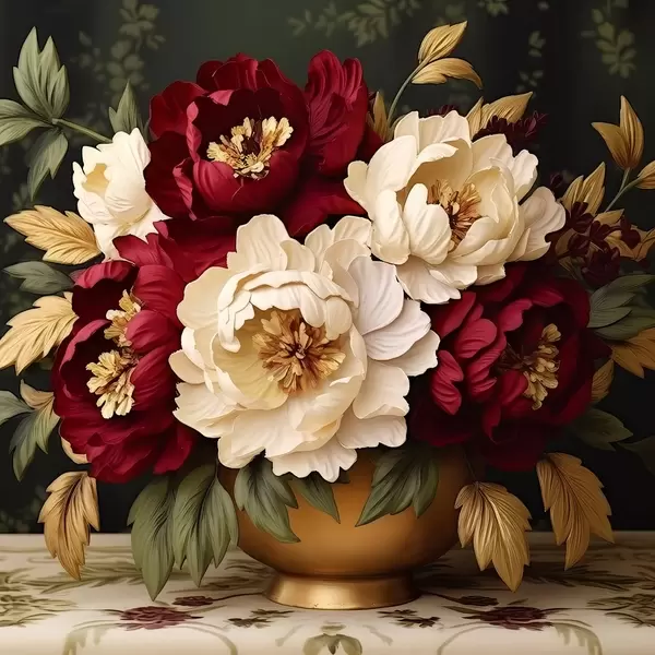 Poster Bujori roșii și albi într-o vază Nr f42820