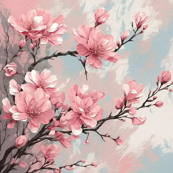 Poster Flori roz și tulpini în stilul picturii acrilice f42918