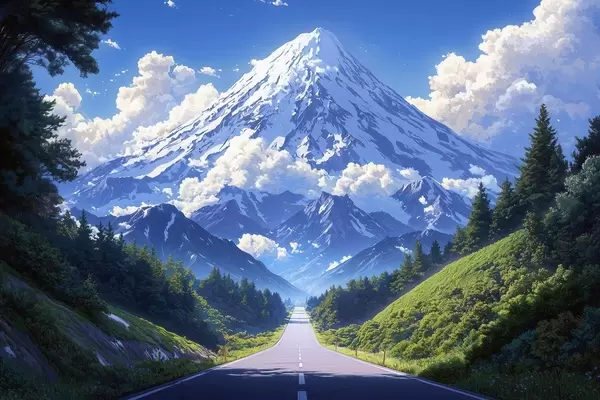 Poster Drum spre munți cu nori și pădure în jur Nr f43317
