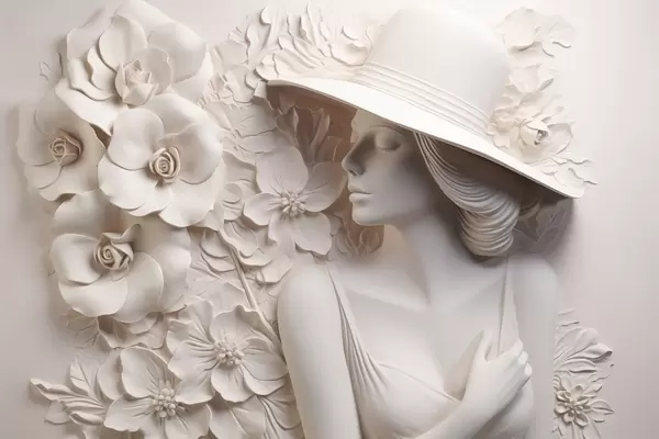 Poster Basorelief imitat al unei femei cu pălărie Nr f43547