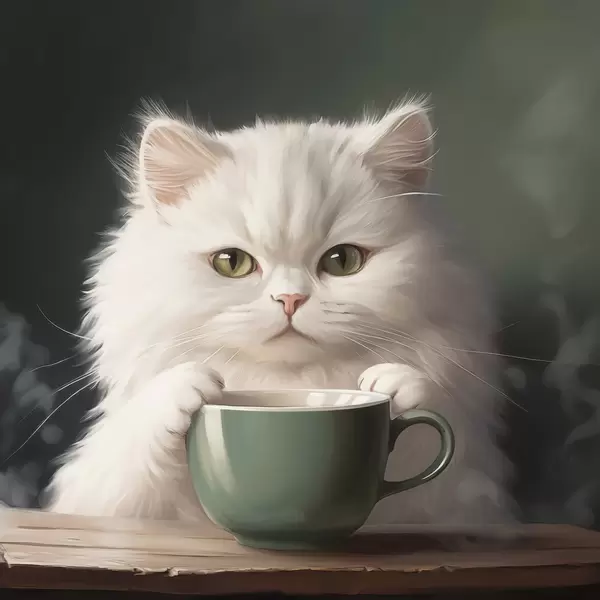 Poster Pisică albă cu ceașcă verde Nr f44032