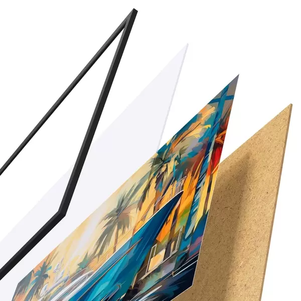 Afișul constă dintr-o ramă, plexiglas, imagine imprimată și suport din PAL. Posterul poate fi agățat imediat pe perete datorită suporturilor de pe spate.