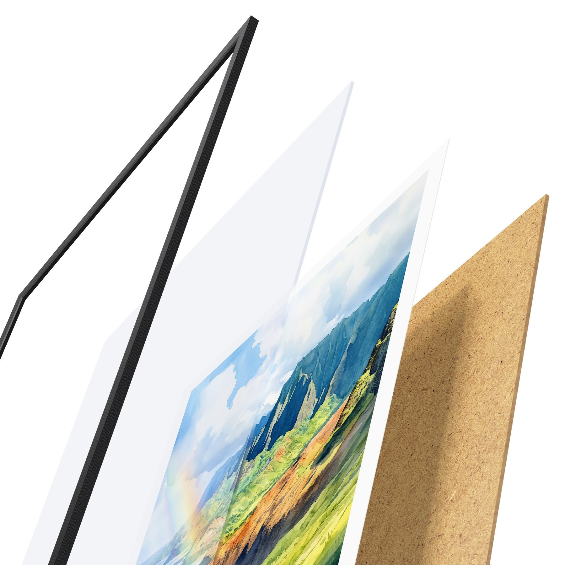 Afișul constă dintr-o ramă, plexiglas, imagine imprimată și suport din PAL. Posterul poate fi agățat imediat pe perete datorită suporturilor de pe spate.