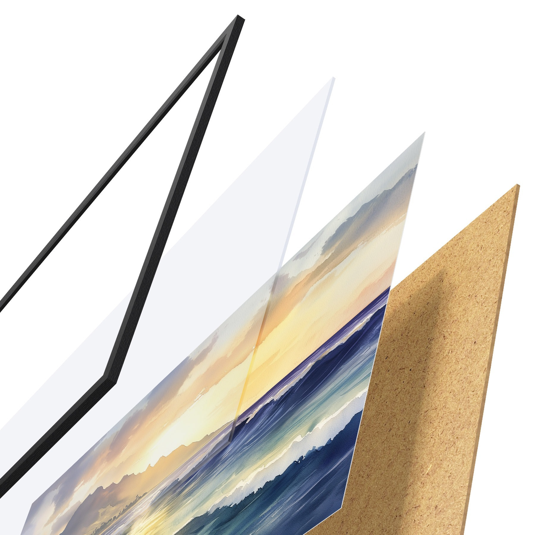 Poster Valuri de ocean, apus de soare, stil acuarelă, natură f44147