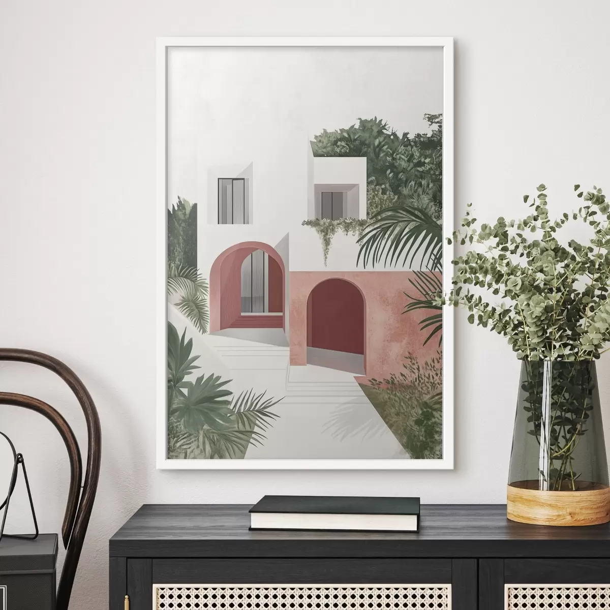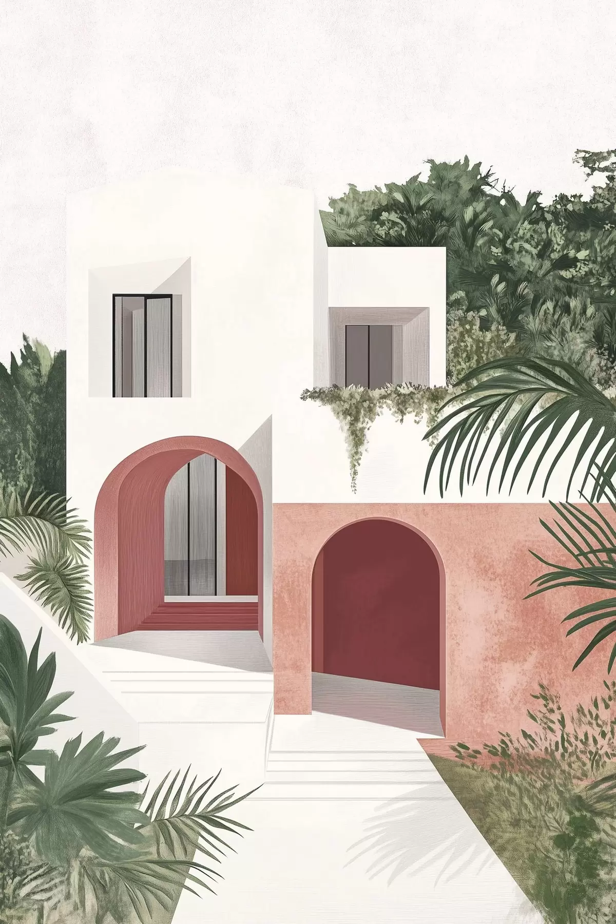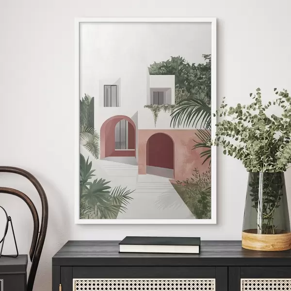 Poster Vilă cu grădină tropicală, mediteraneană, stil acrilic Nr f44151