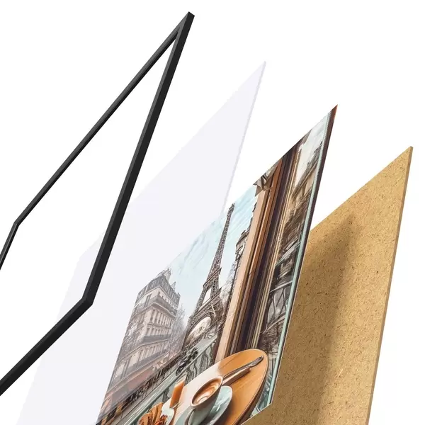 Afișul constă dintr-o ramă, plexiglas, imagine imprimată și suport din PAL. Posterul poate fi agățat imediat pe perete datorită suporturilor de pe spate.