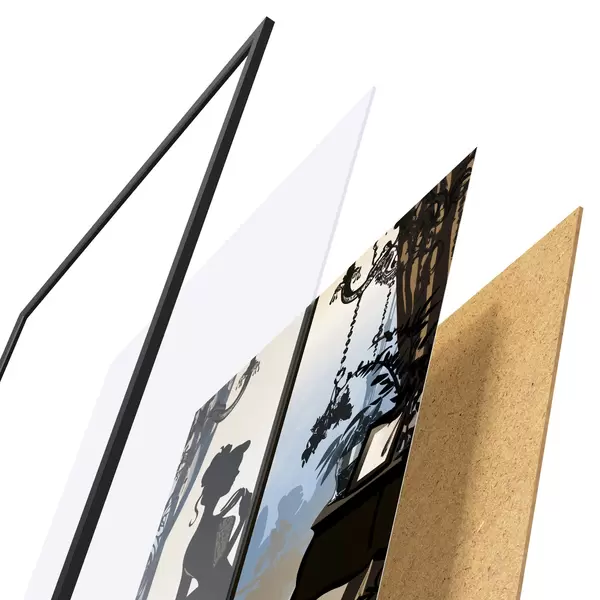 Afișul constă dintr-o ramă, plexiglas, imagine imprimată și suport din PAL. Posterul poate fi agățat imediat pe perete datorită suporturilor de pe spate.