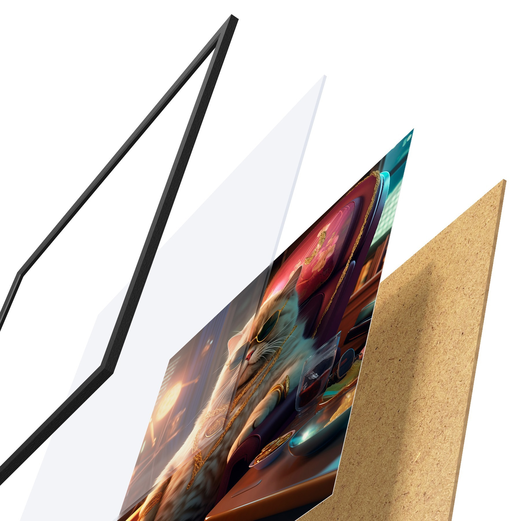 Afișul constă dintr-o ramă, plexiglas, imagine imprimată și suport din PAL. Posterul poate fi agățat imediat pe perete datorită suporturilor de pe spate.