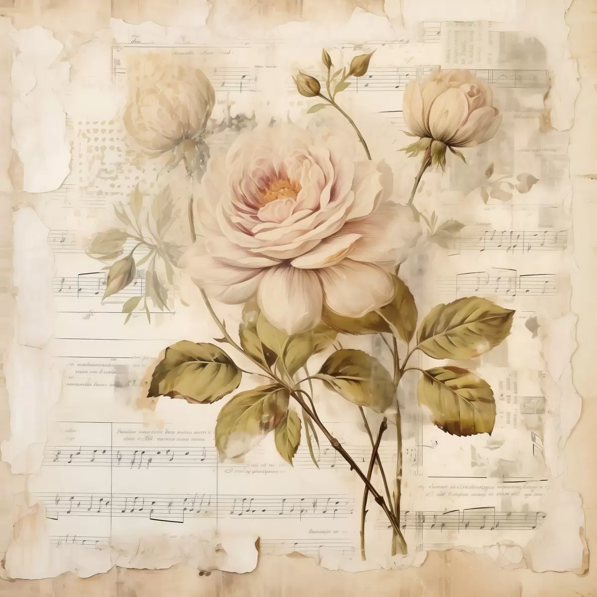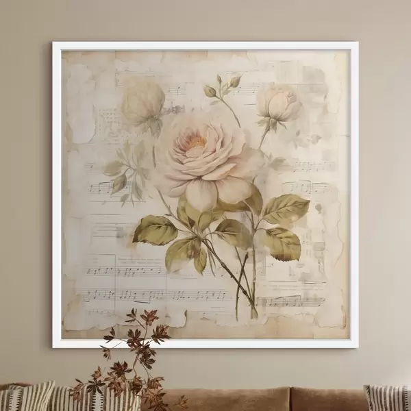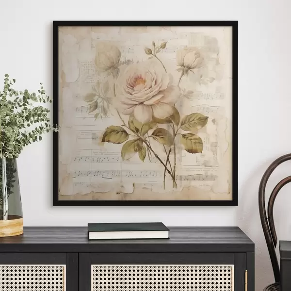 Poster Vintage compoziție de trandafiri pe fundalul de note vechi Nr f44247