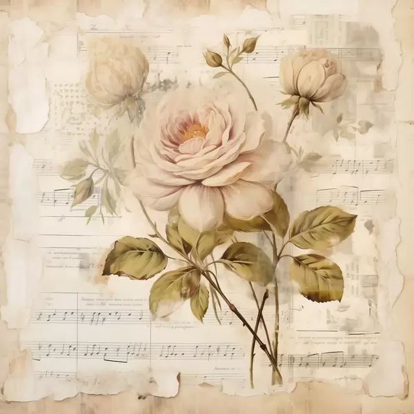 Poster Vintage compoziție de trandafiri pe fundalul de note vechi Nr f44247