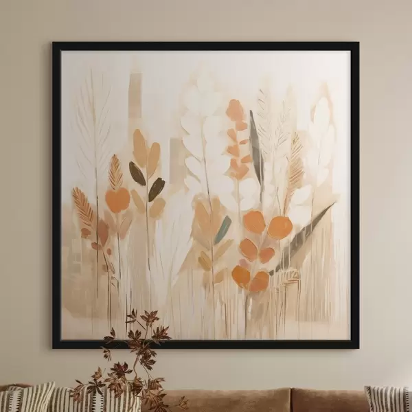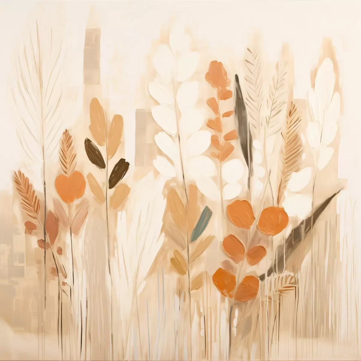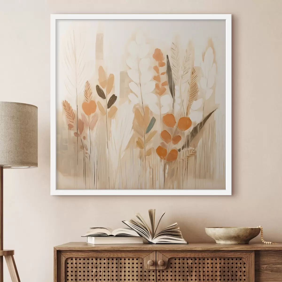 Poster Abstracție caldă cu ierburi de câmp și flori într-o paletă bej-portocaliu în stil Art Nouveau Nr f44252