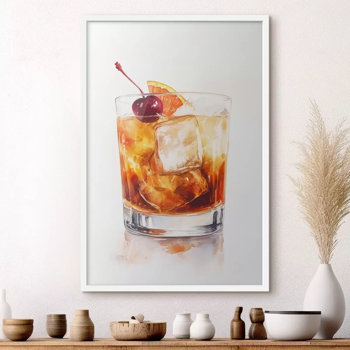 Poster Cocktail portocaliu cu gheață și cireșe, stil acuarelă Nr f44303