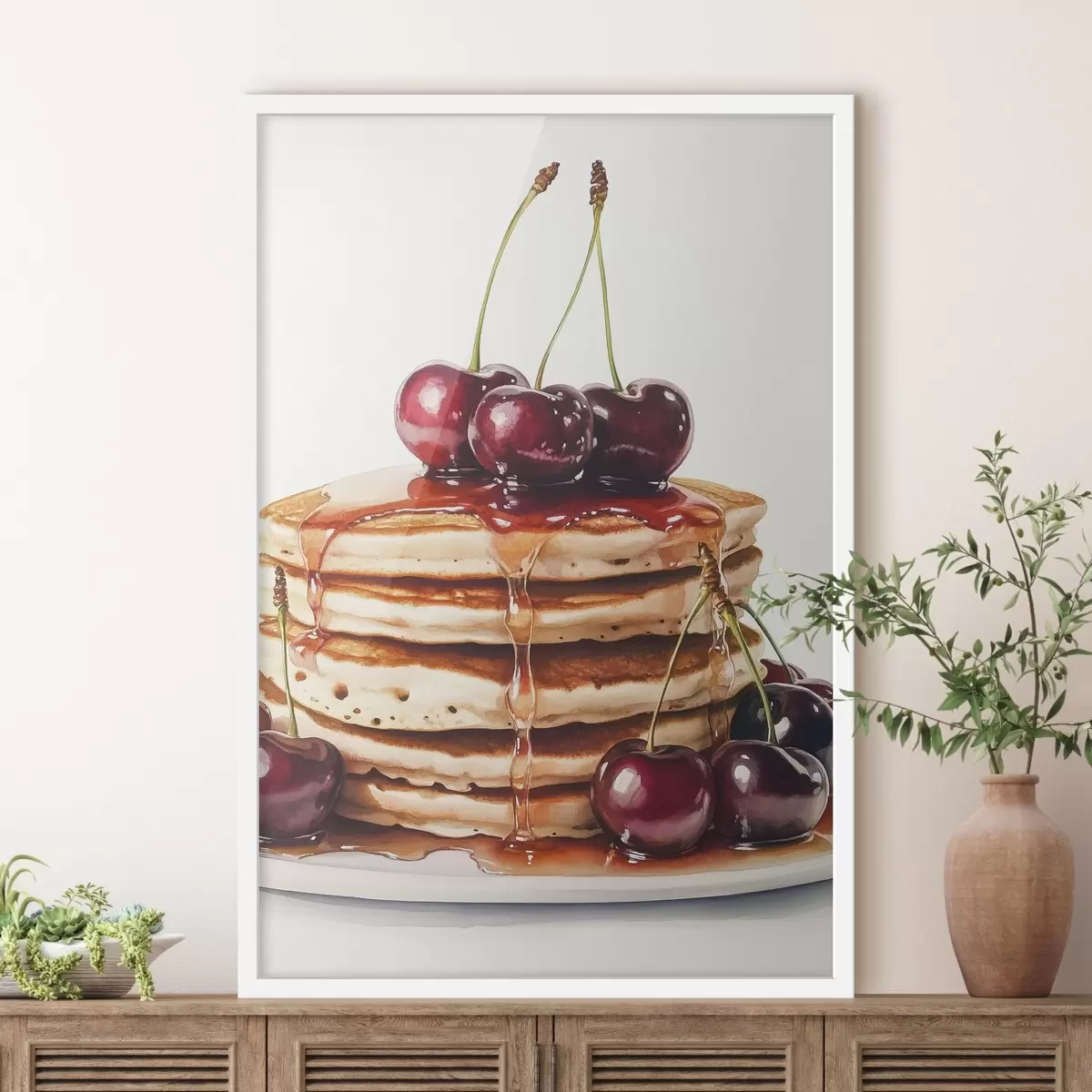Poster Clătite delicioase cu cireșe și sirop, stil acuarelă Nr f44305