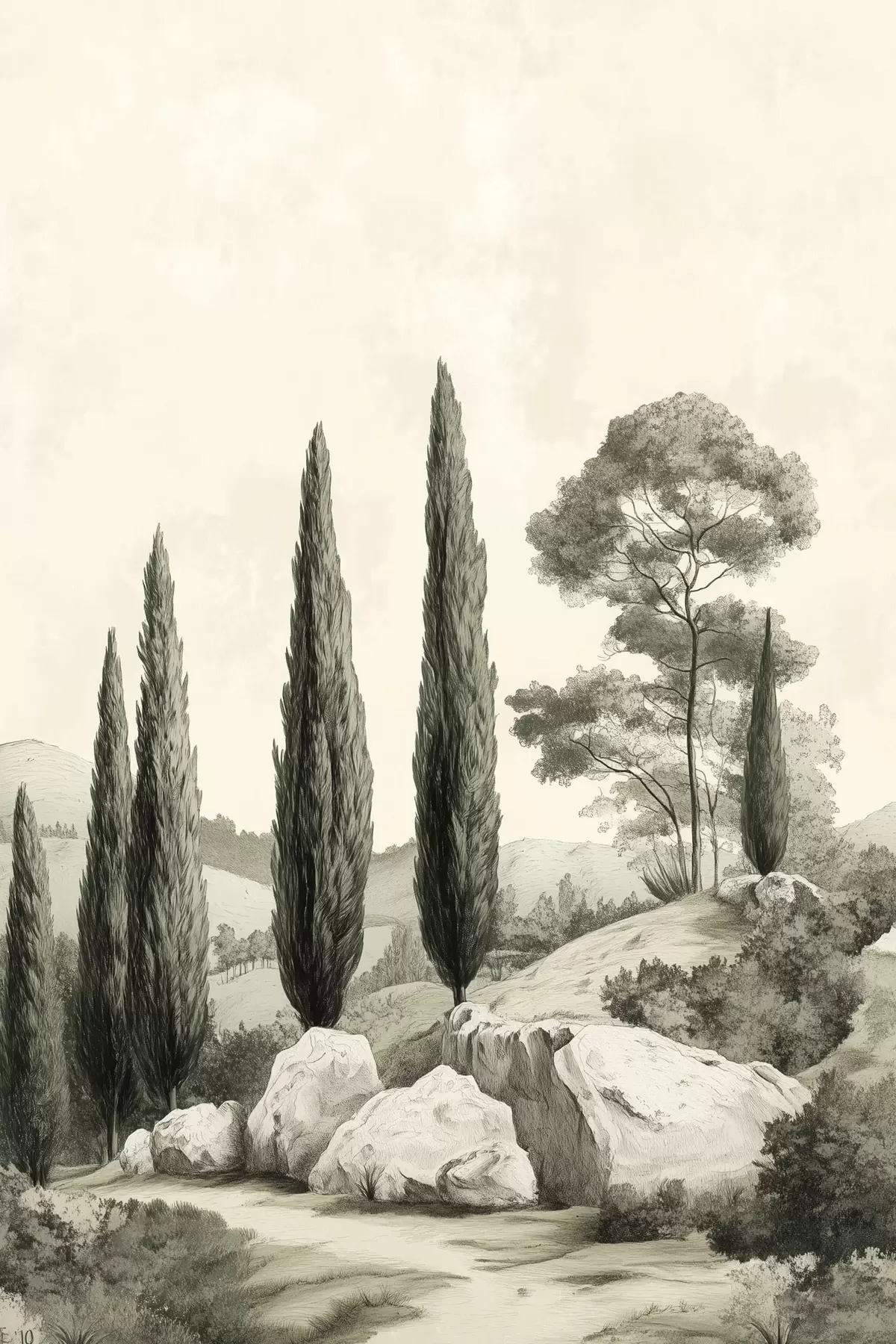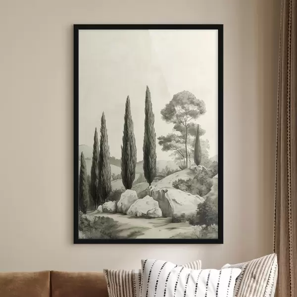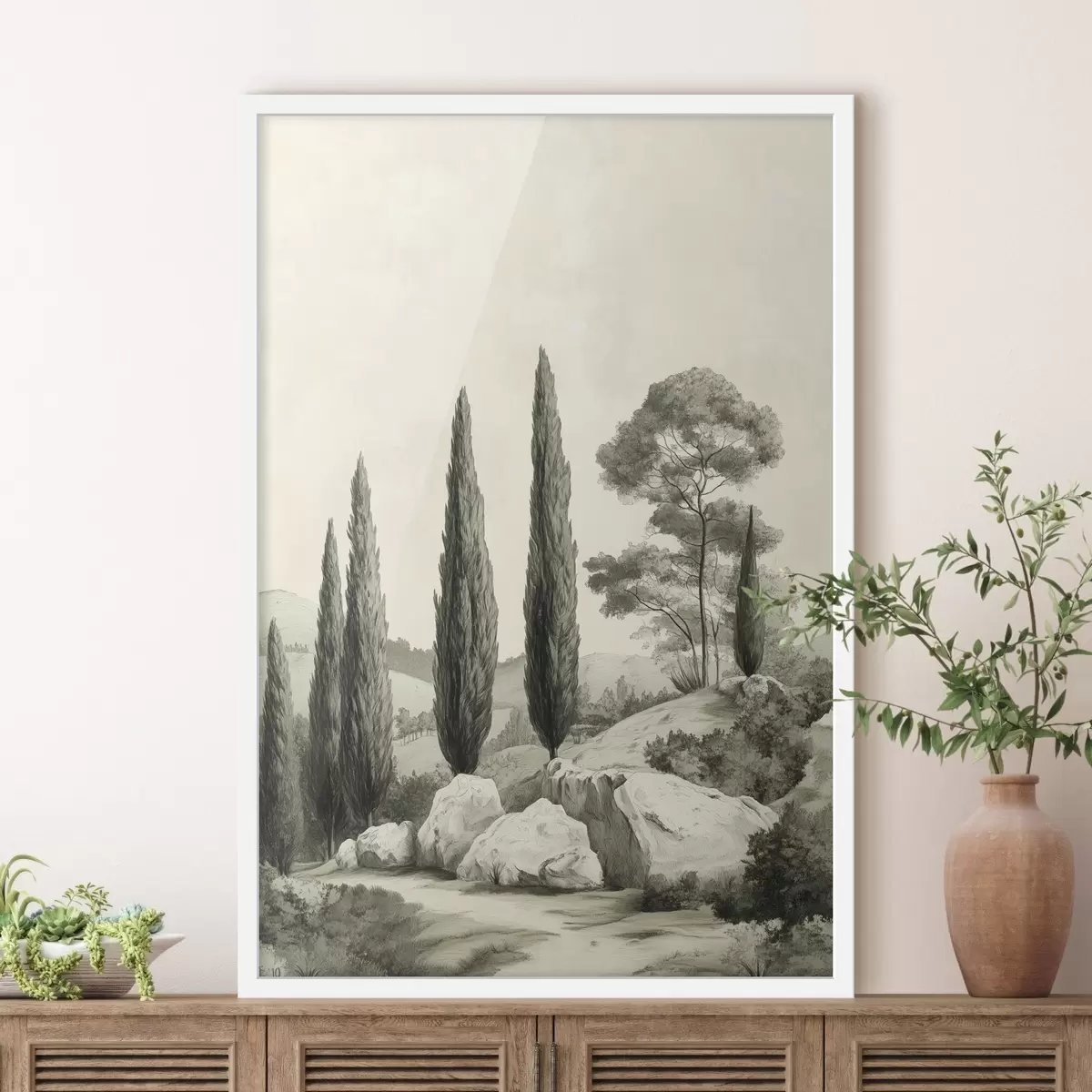 Poster Toscana peisaje, culori pastelate, chiparoși, pietre, stil rustic Nr f44307