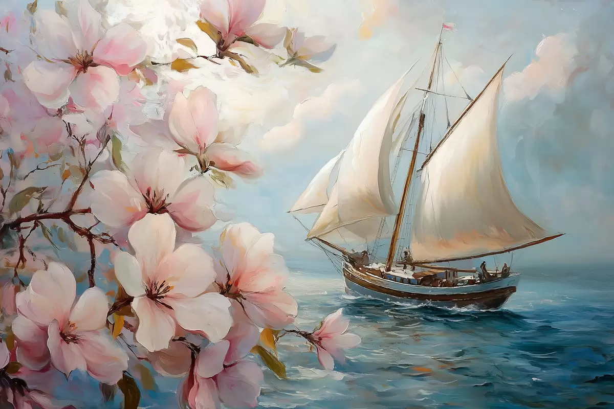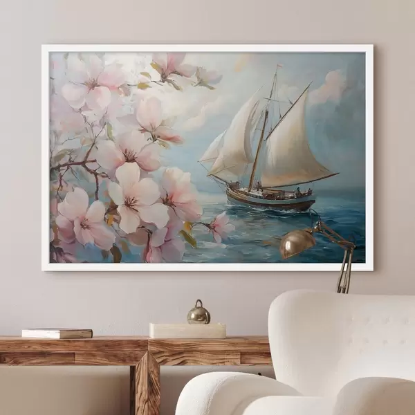 Poster Barcă pe mare și flori mari Nr f44330