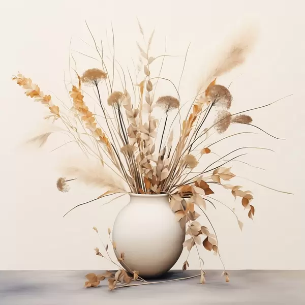 Poster Aranjament de ierburi și flori uscate într-o vază albă Nr f44348