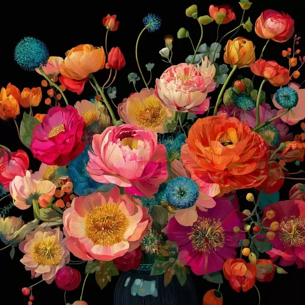 Poster Extravaganță florală pe un fundal negru Nr f44352