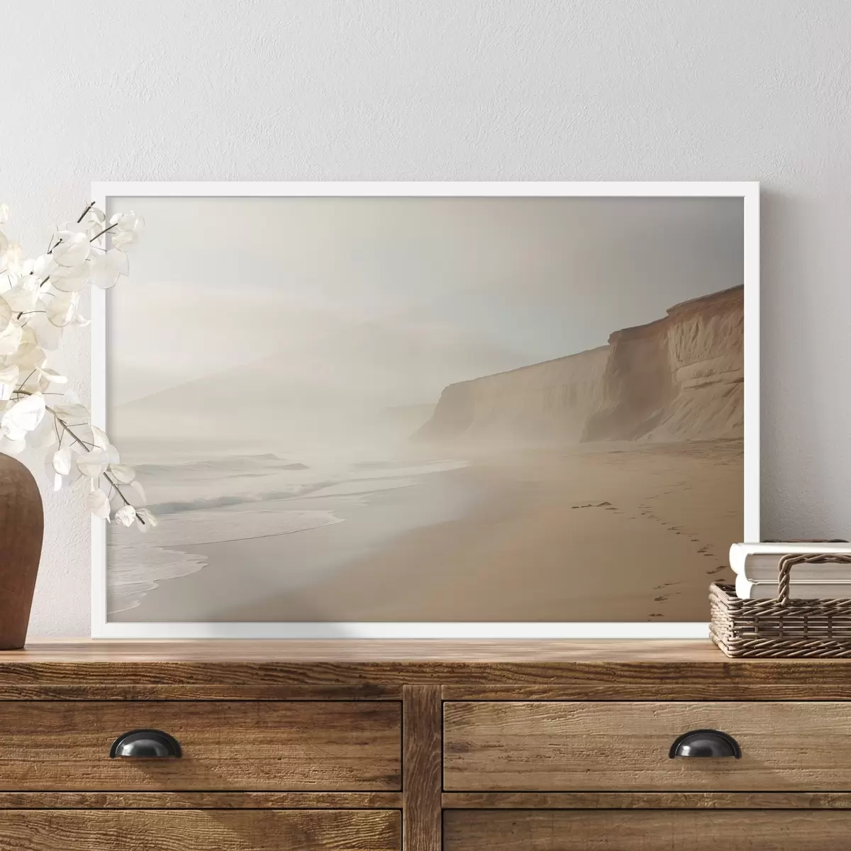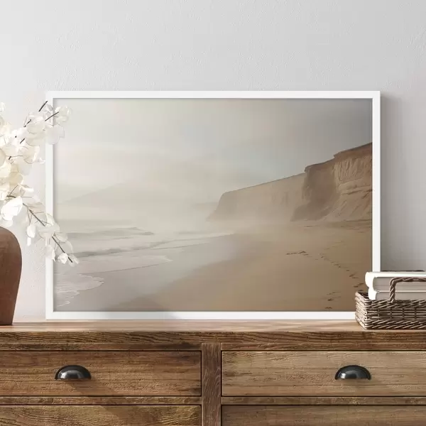 Poster Peisaj al unei plaje de nisip cu o stâncă într-o zi însorită clară f44391