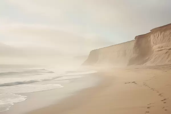 Poster Peisaj al unei plaje de nisip cu o stâncă într-o zi însorită clară f44391