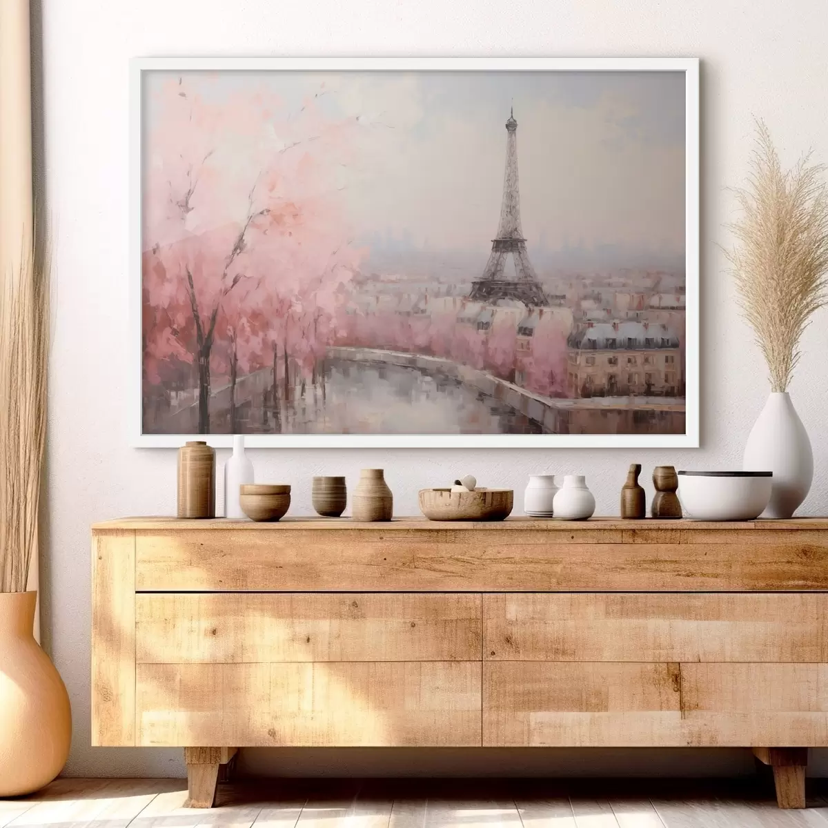 Poster Turnul Eiffel din Paris cu cireși înfloriți primăvara, culori pastelate moi Nr f44398