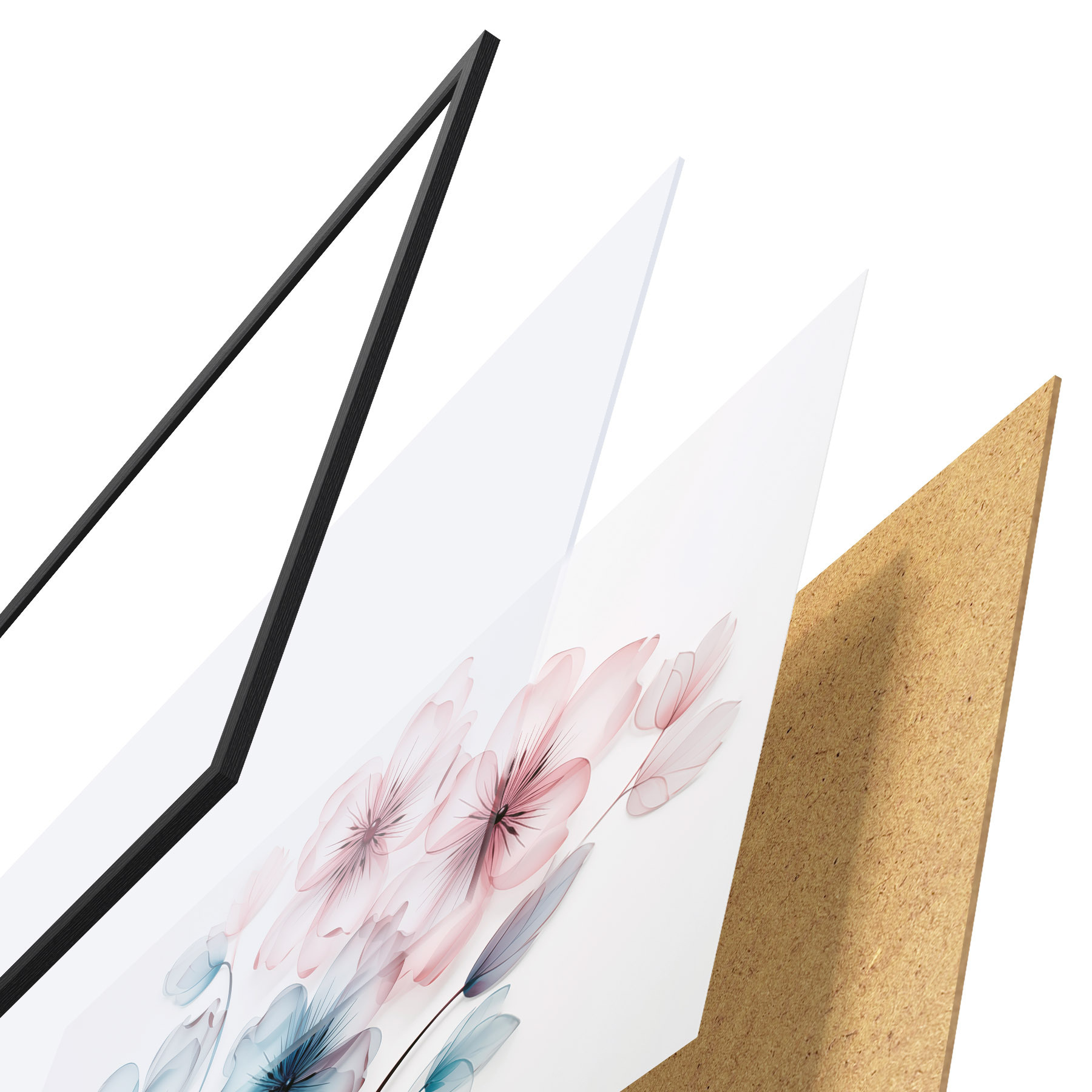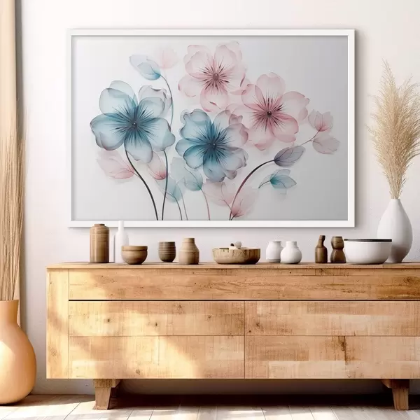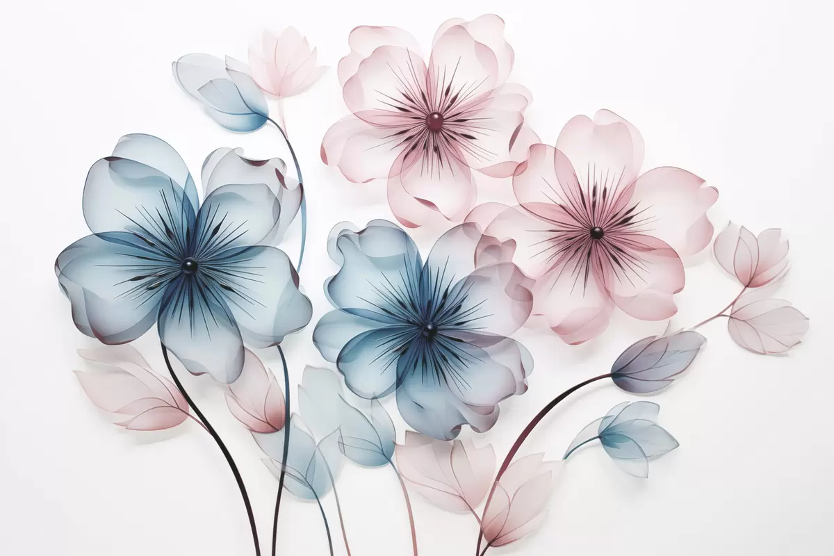 Poster Flori translucide roz și albastru, cu stamine și tulpini vizibile f44405