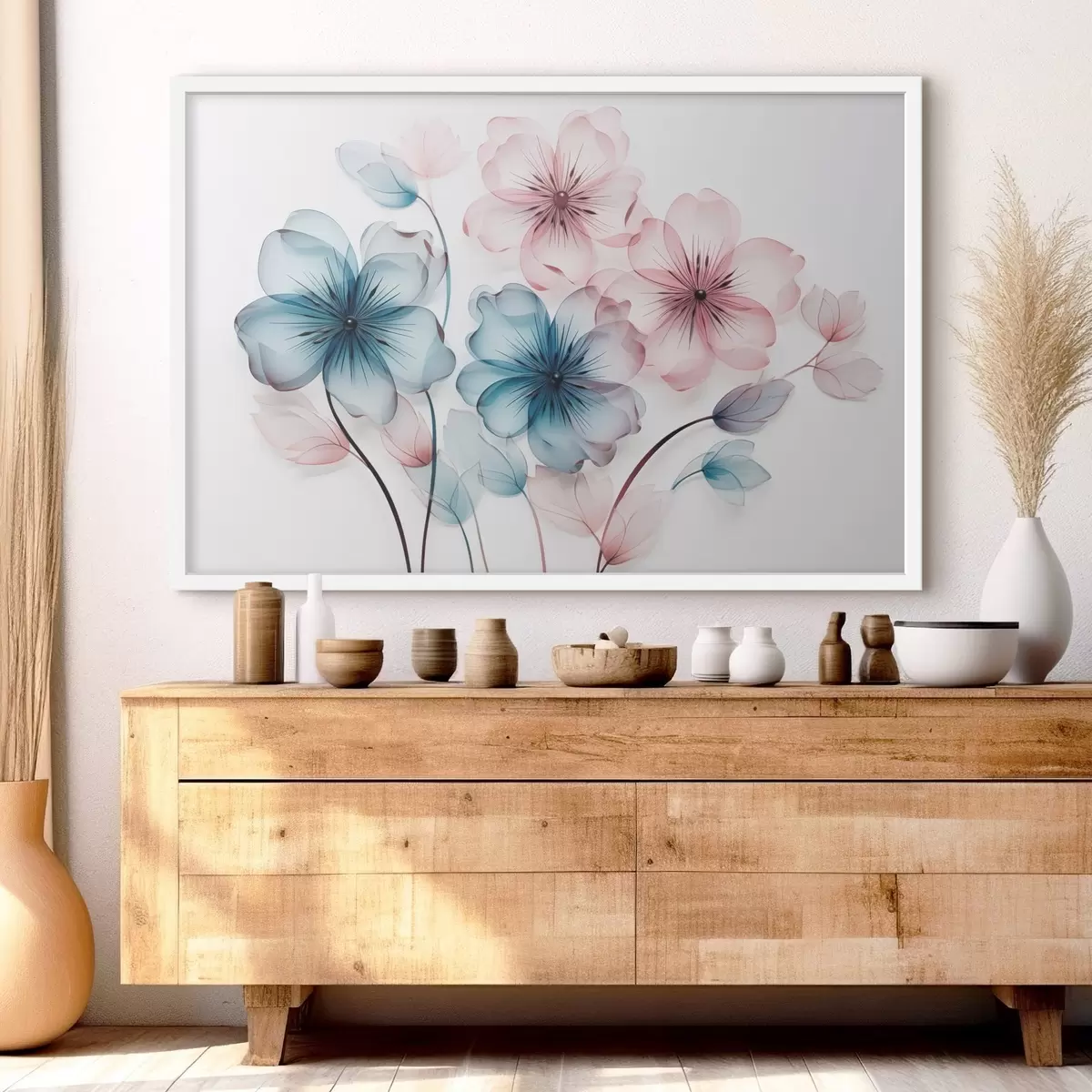 Poster Flori translucide roz și albastru, cu stamine și tulpini vizibile Nr f44405