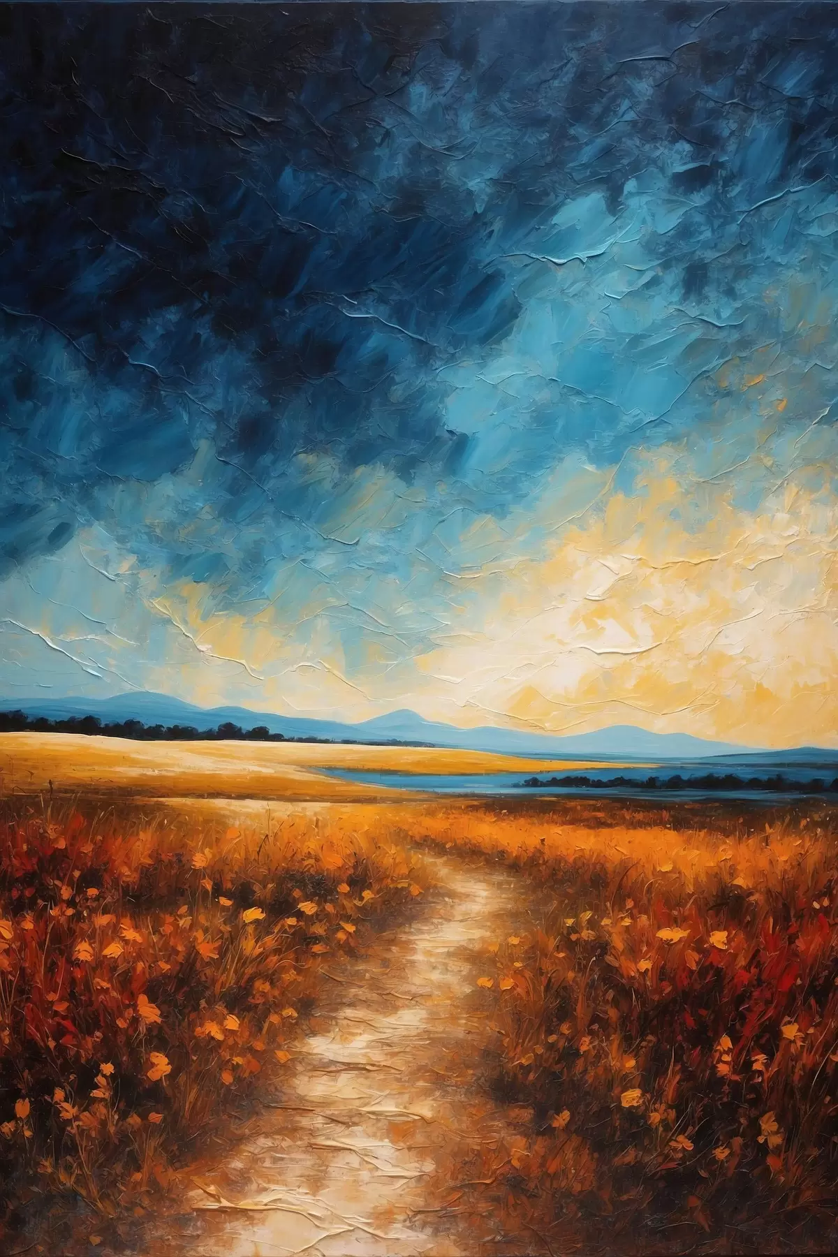 Poster Câmp de flori în seara în stil pictură acrilică Nr f44440