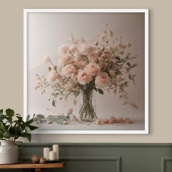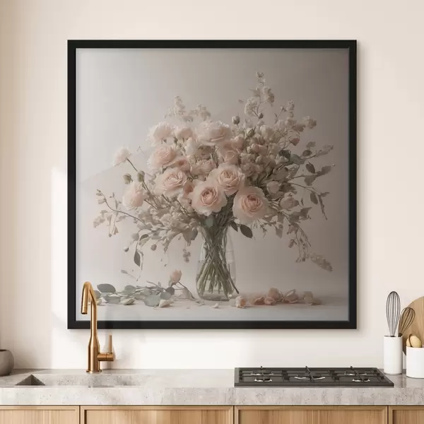 Poster Trandafiri albi în vază transparentă Nr f44451