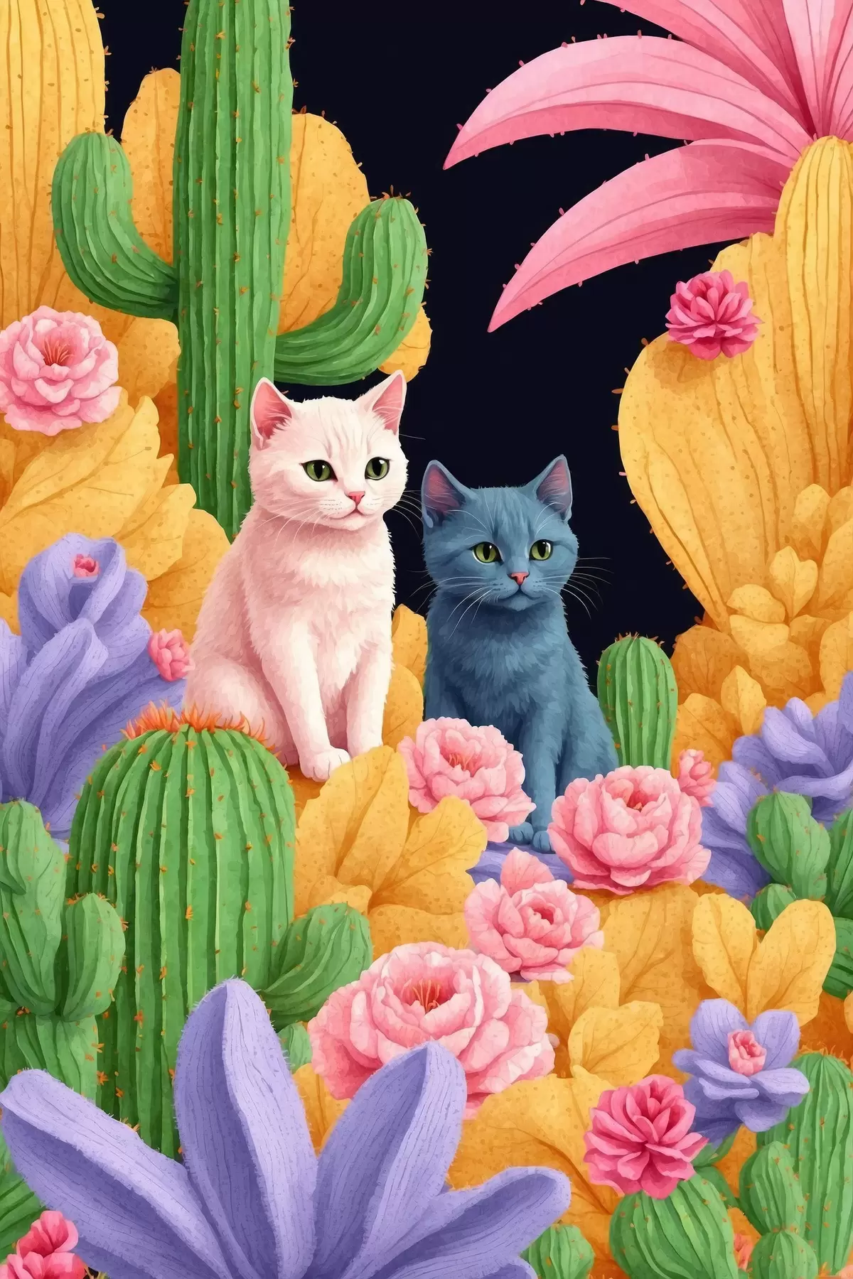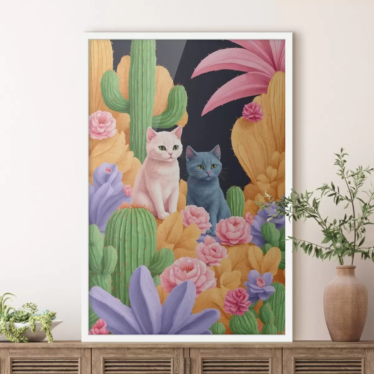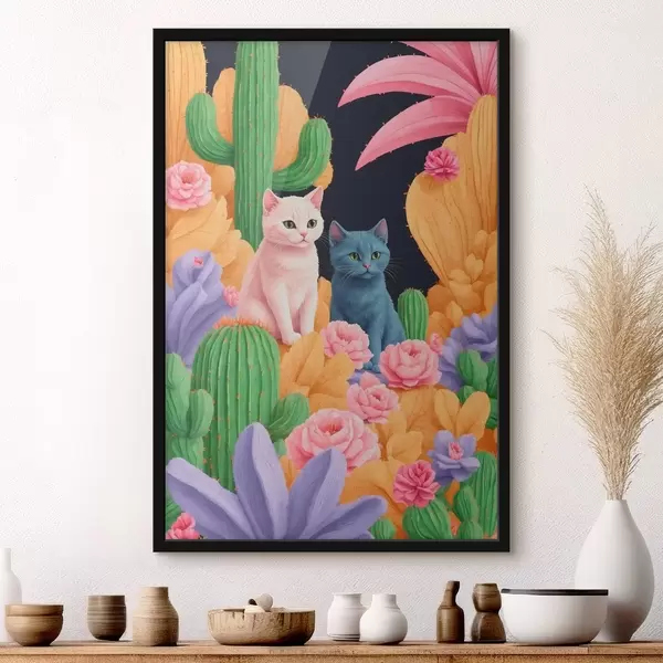 Poster Pisici artificiale printre flori și cactus Nr f44452