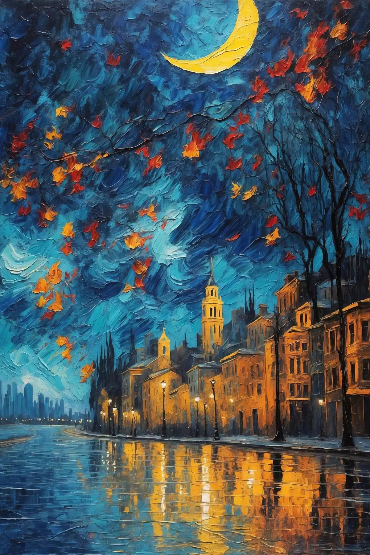 Poster Noapte Londra în stil pictură acrilică Nr f44453