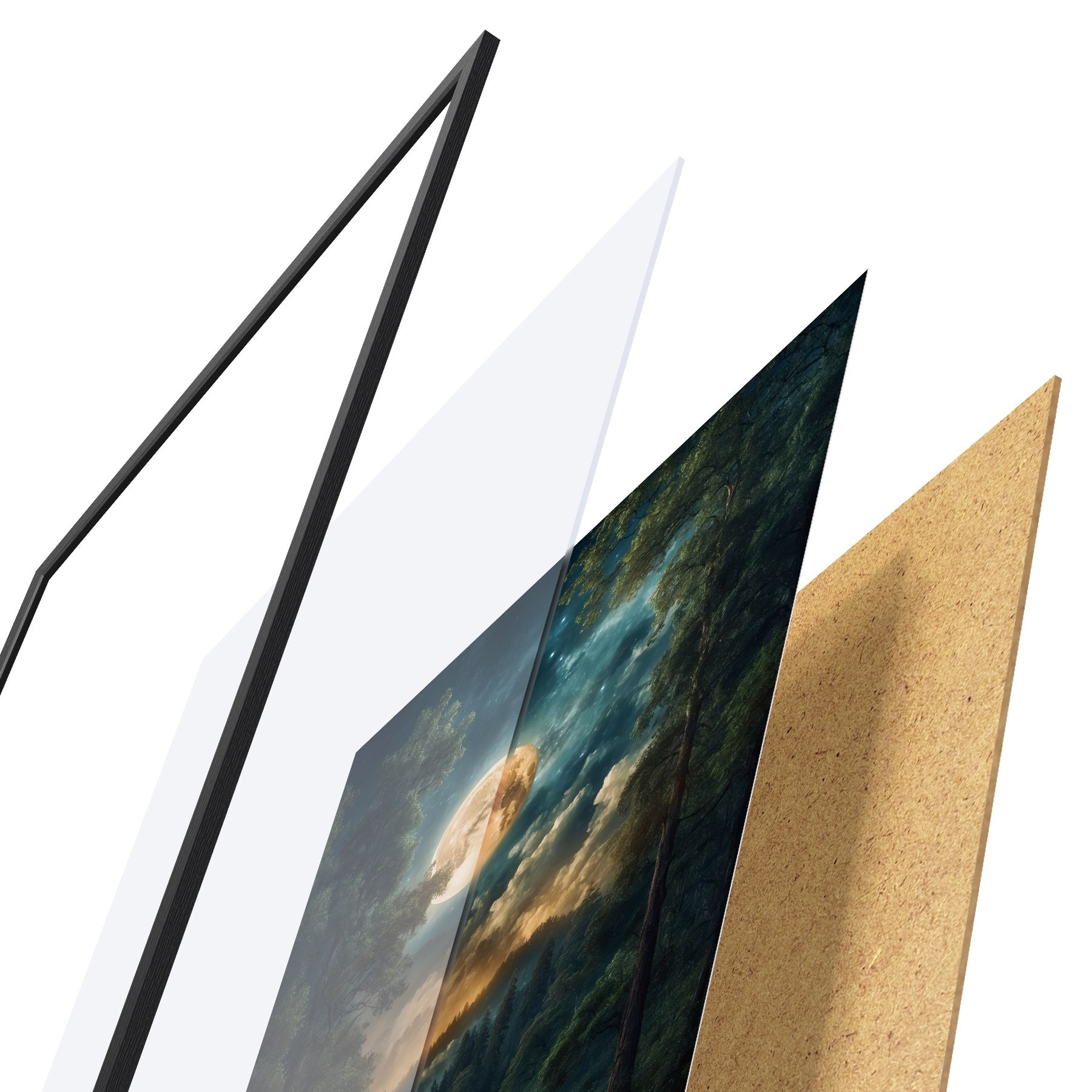 Afișul constă dintr-o ramă, plexiglas, imagine imprimată și suport din PAL. Posterul poate fi agățat imediat pe perete datorită suporturilor de pe spate.