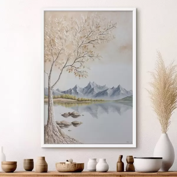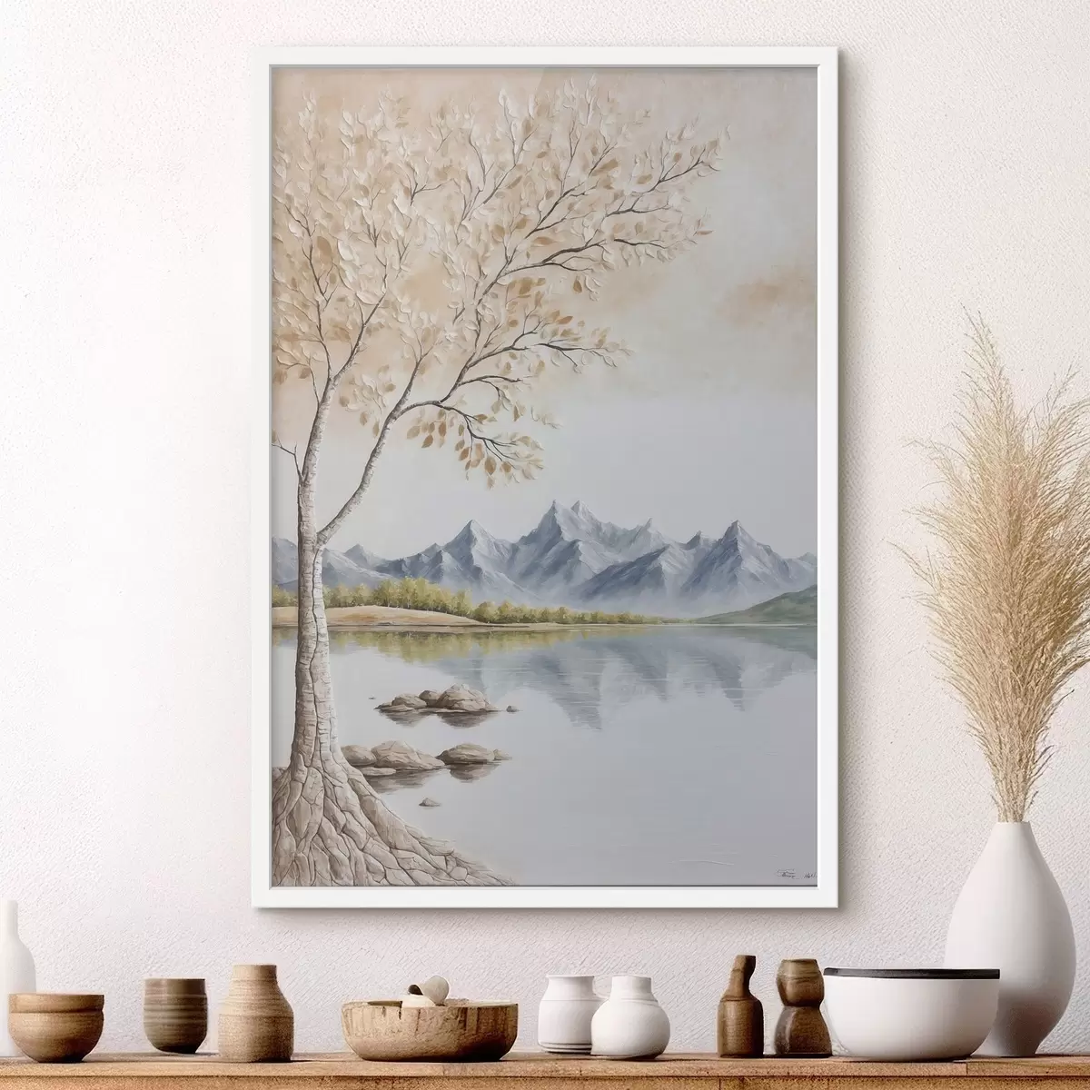 Poster Copac pe fundal lac și munți înzăpeziți Nr f44459