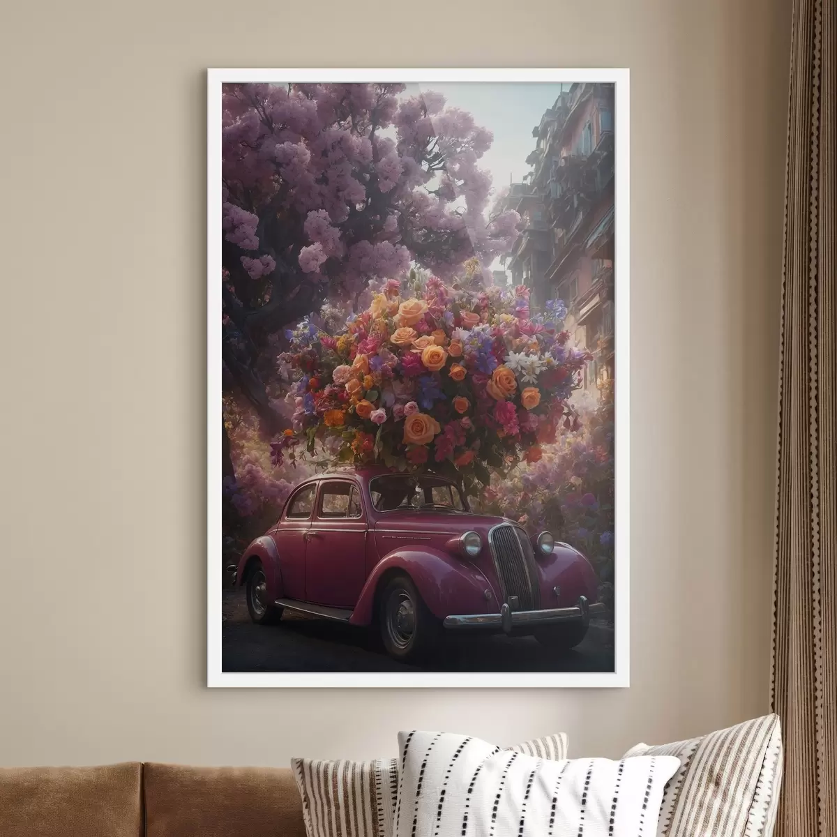 Poster Mașină retro și un buchet imens de flori Nr f44471