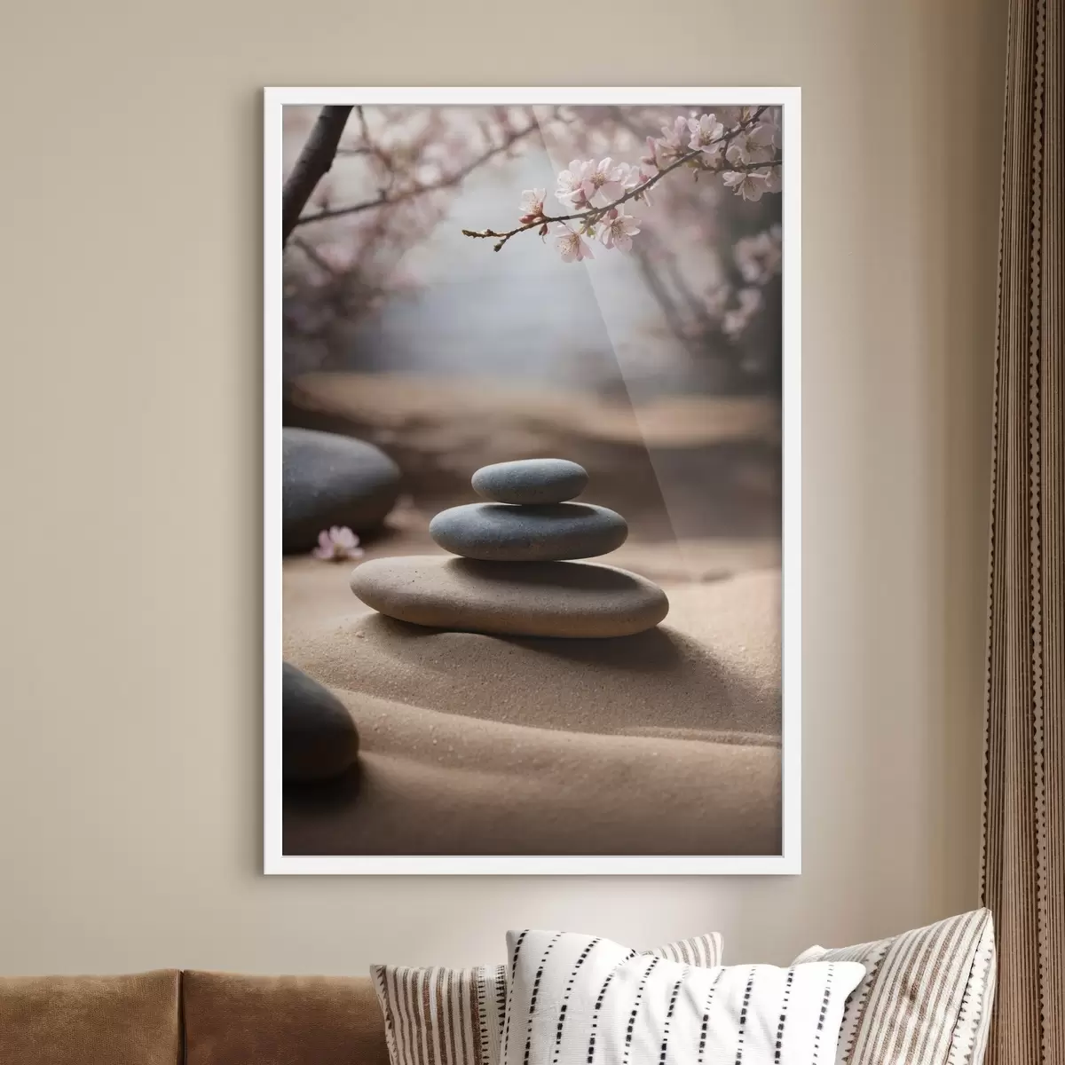Poster Pietre pe nisip pe fundal încețoșat Nr f44475