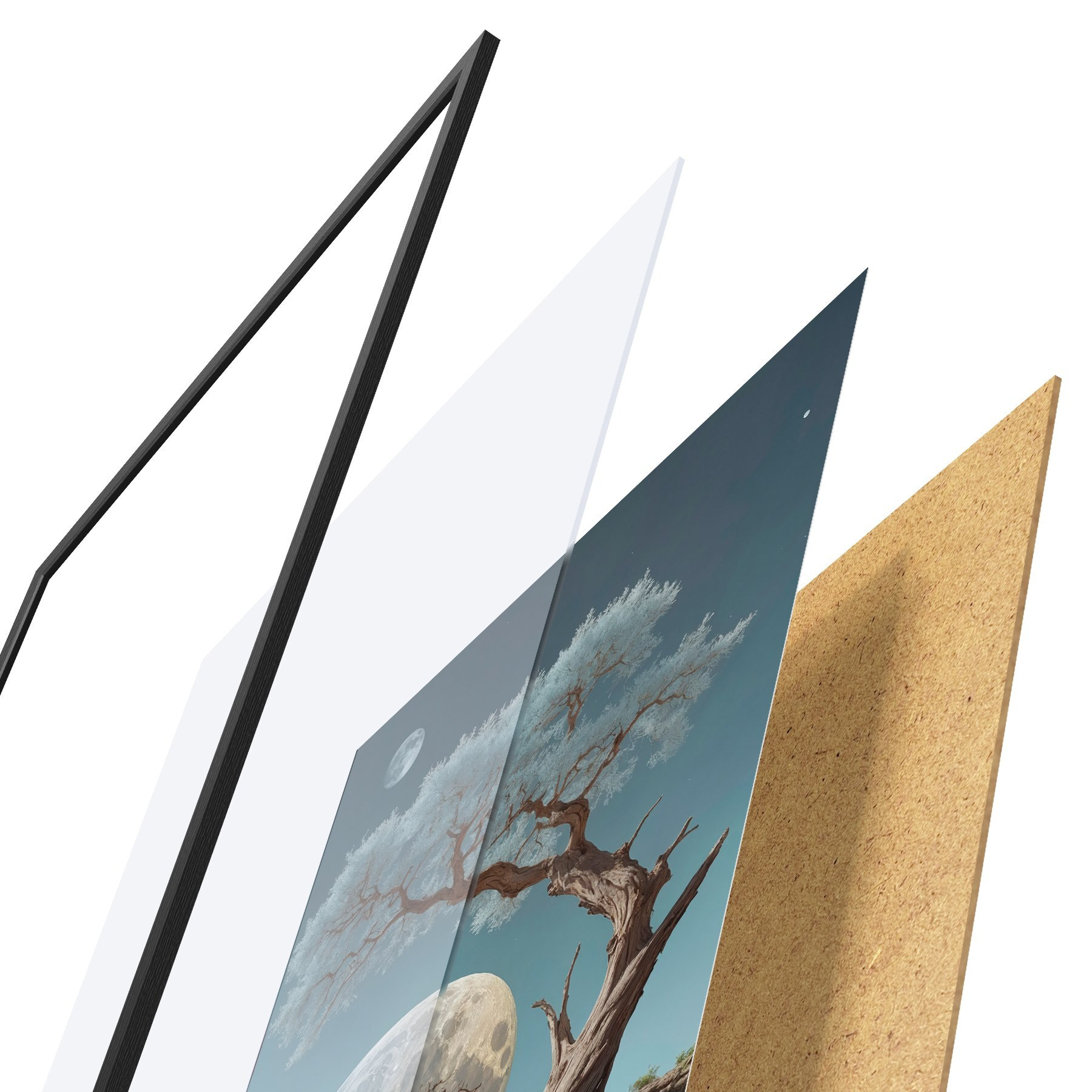 Afișul constă dintr-o ramă, plexiglas, imagine imprimată și suport din PAL. Posterul poate fi agățat imediat pe perete datorită suporturilor de pe spate.