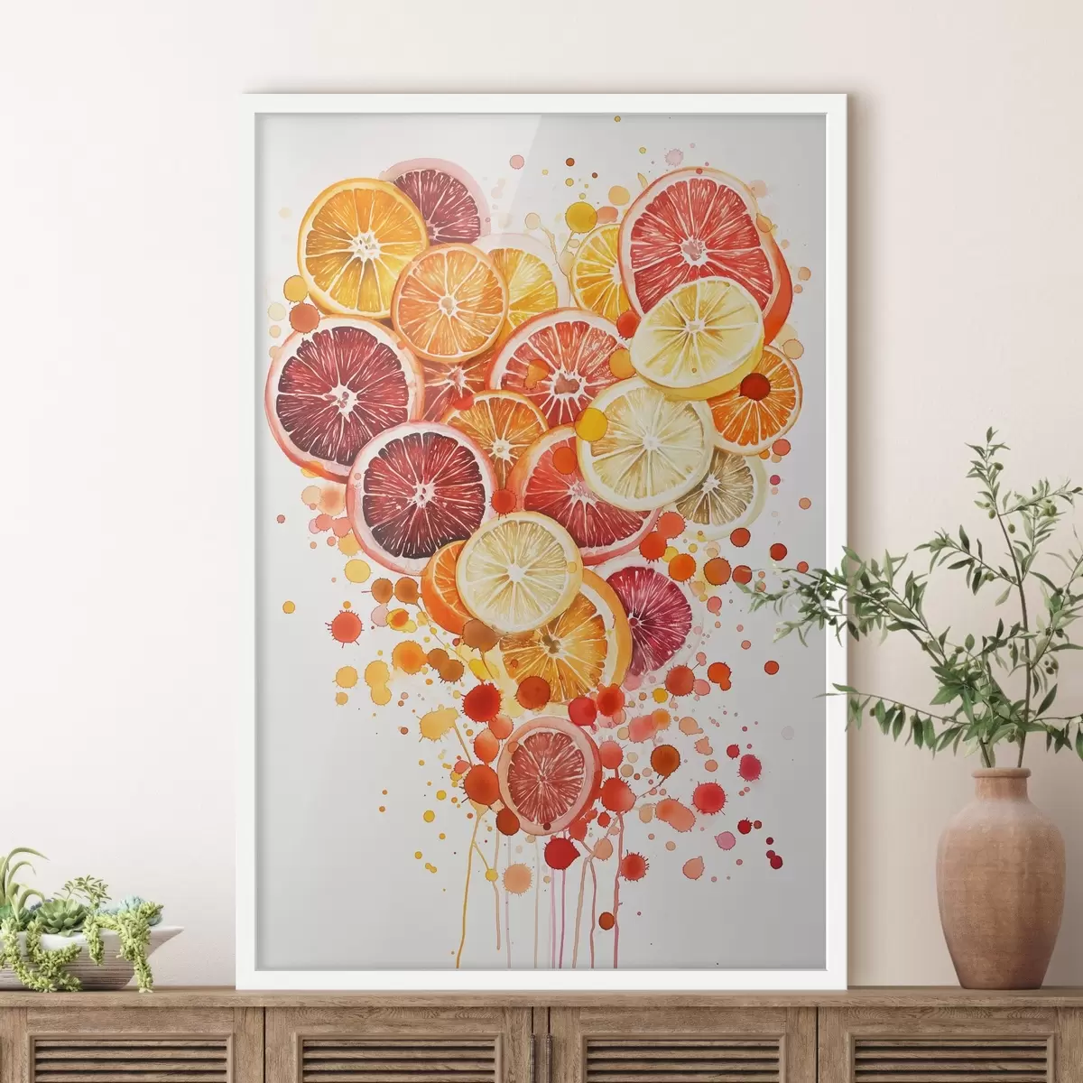 Poster Compoziție jucăușă de felii de lămâie, portocală, grepfrut și lime în formă de inimă Nr f44545
