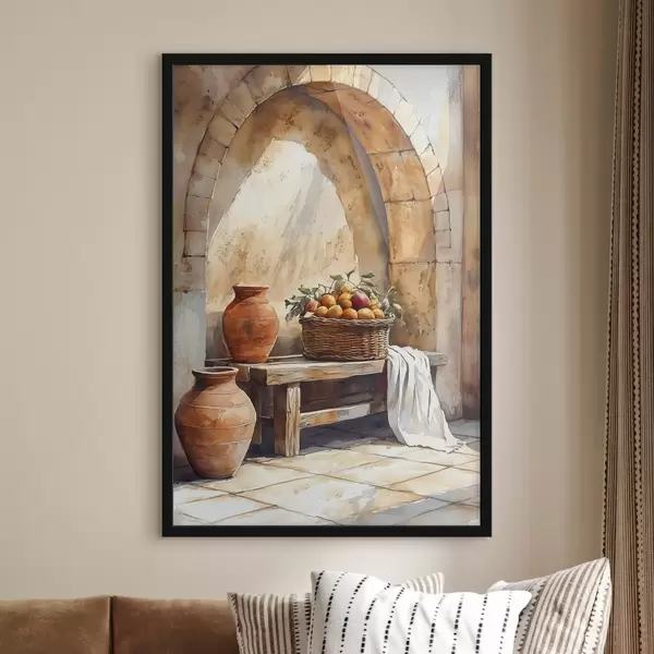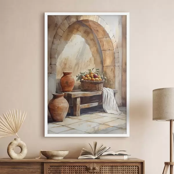 Poster Vase estetice și coș de răchită cu portocale, Toscana, stil rustic Nr f44605